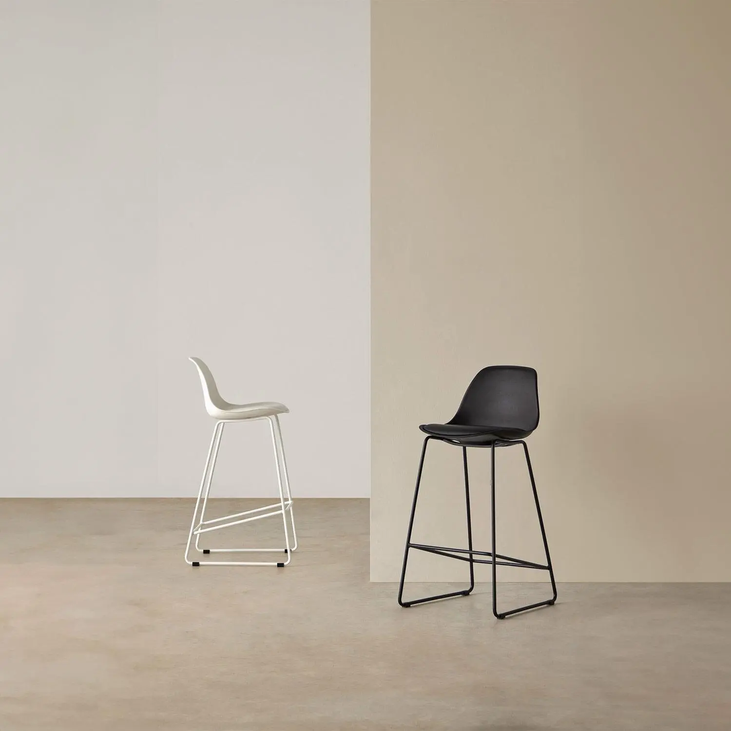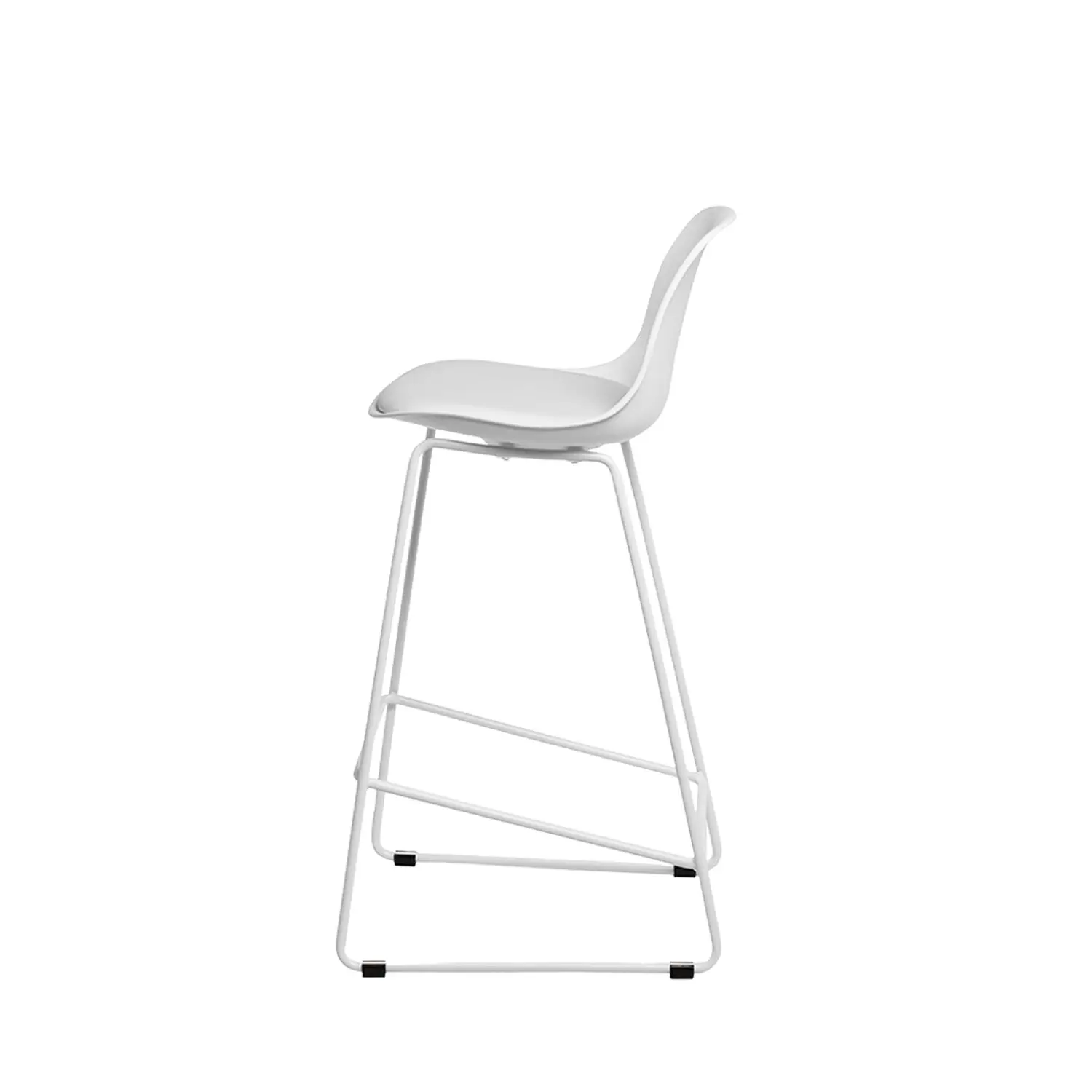 Añade un toque elegante con el taburete bajo JAKE. Este taburete presenta un asiento acolchado de polipropileno en color blanco, fácil de limpiar, y un respaldo ergonómico que garantiza comodidad durante horas de uso. Sus patas metálicas, también en blanco, incluyen un reposapiés cuadrado con una ligera inclinación, proporcionando mayor estabilidad y un aspecto más refinado. El taburete bajo JAKE es ideal para cocinas o mesas altas, combinando funcionalidad y estilo en cualquier espacio.