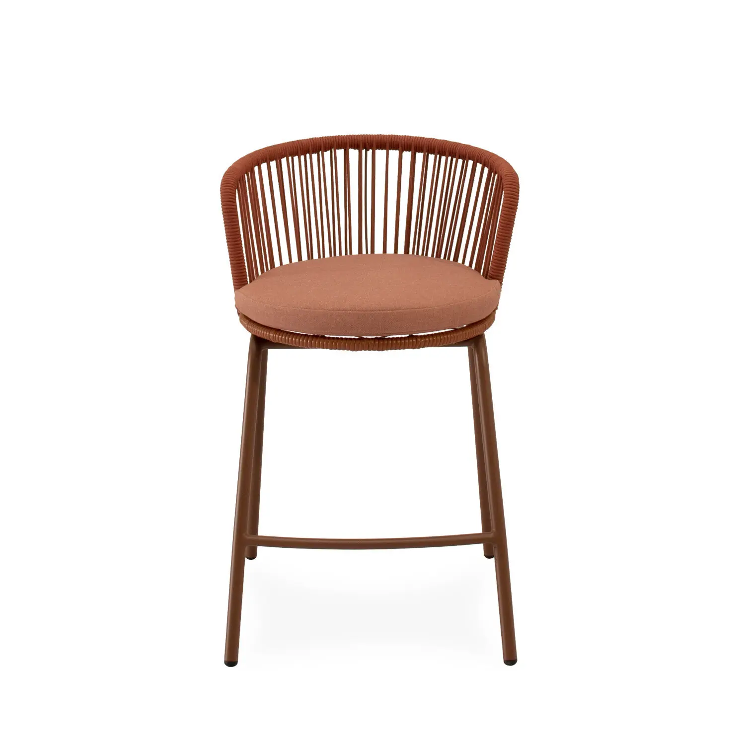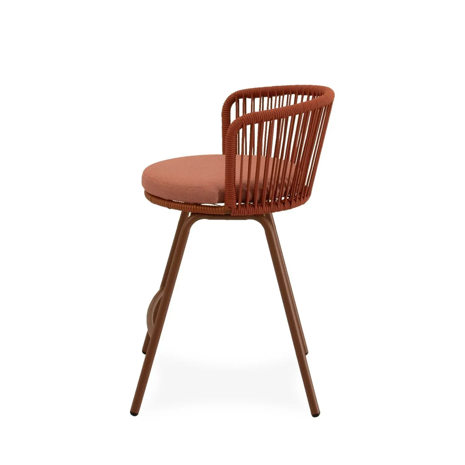 El taburete PIERRE combina un estilo contemporáneo con un diseño pensado para aportar comodidad y frescura a cualquier espacio exterior. Su respaldo curvo, elaborado en cuerda resistente, presenta un entramado lineal que crea un efecto visual ligero y dinámico. Esta estructura no solo envuelve suavemente la espalda, sino que también permite una ventilación natural, perfecta para los días más cálidos. Las patas de acero especialmente acondicionado para exteriores, añaden estabilidad y un toque moderno, mientras que el asiento acolchado en poliéster proporciona el confort necesario para largas tertulias al aire libre. PIERRE se integra fácilmente en terrazas, barras y jardines, convirtiéndose en una opción versátil y funcional.