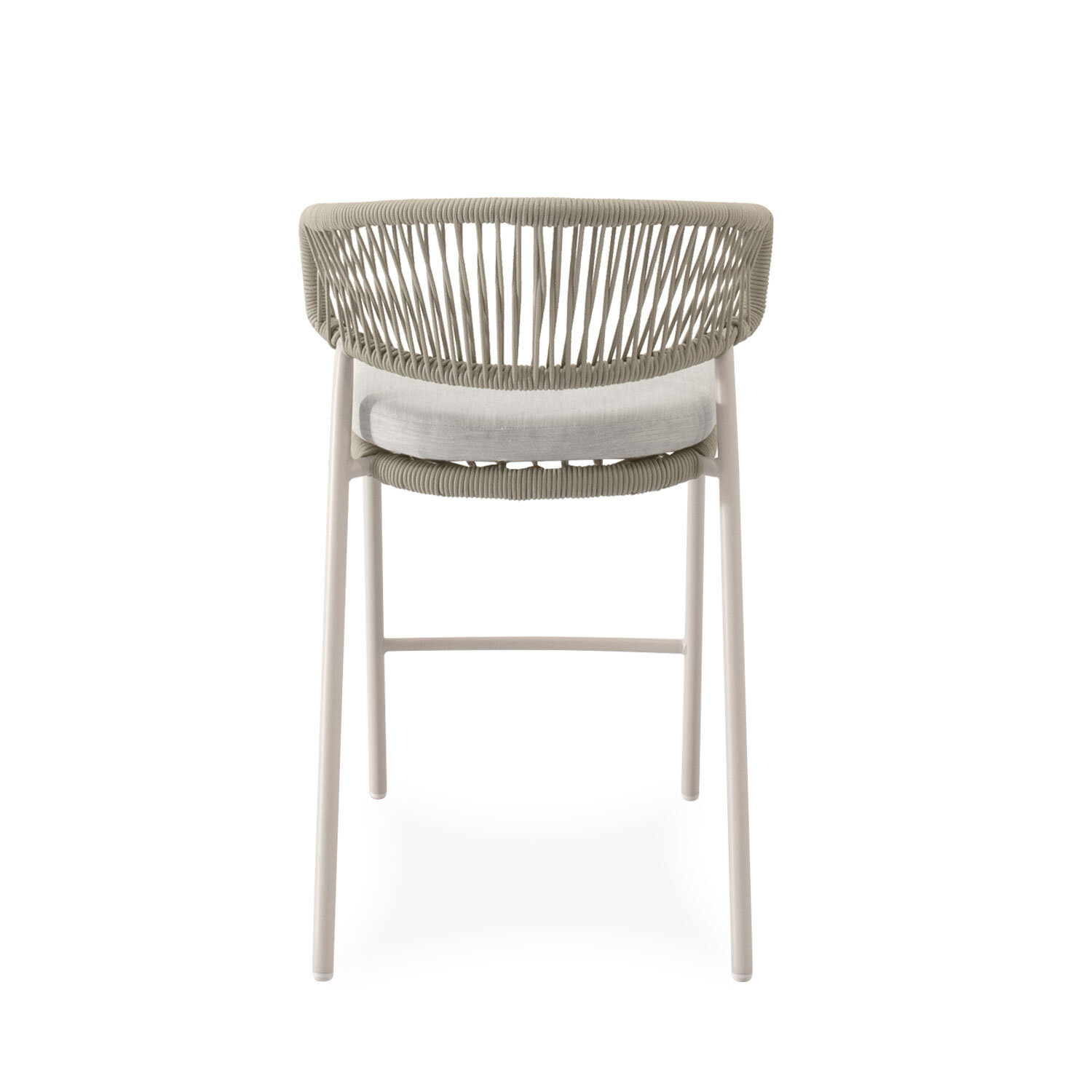 El taburete RANDALL redefine el minimalismo con un diseño que equilibra estética y funcionalidad. Su respaldo curvo, tejido en cuerda resistente, se eleva de forma independiente respecto al asiento, creando una separación visual que aporta ligereza al conjunto y facilita la circulación del aire. Las patas de acero con tratamiento exclusivo para exteriores, refuerzan la estabilidad del taburete, mientras que el asiento acolchado en poliéster asegura comodidad en cada uso. Una pieza versátil que encaja tanto en terrazas urbanas como en espacios más relajados, aportando un aire moderno y acogedor.