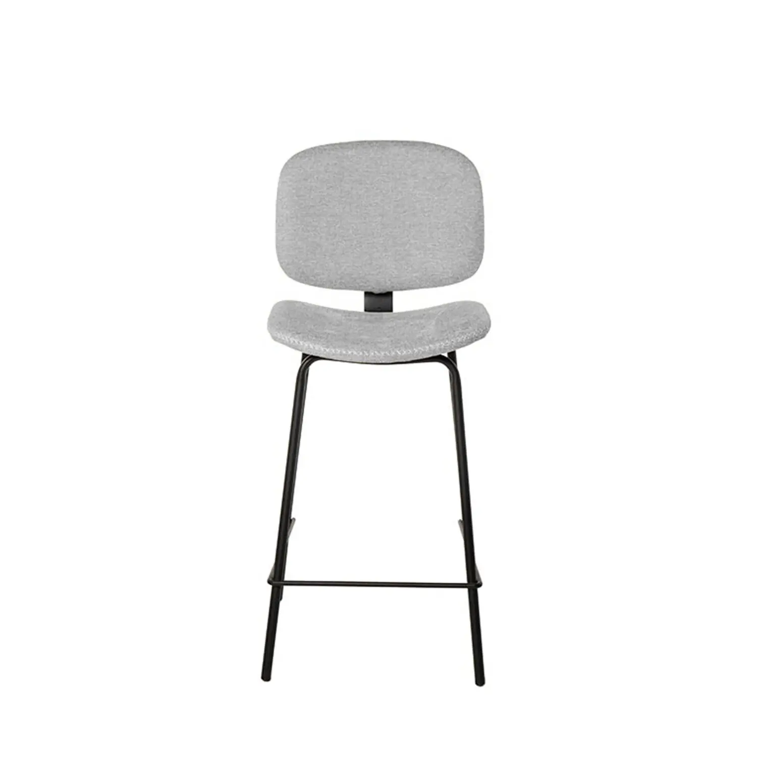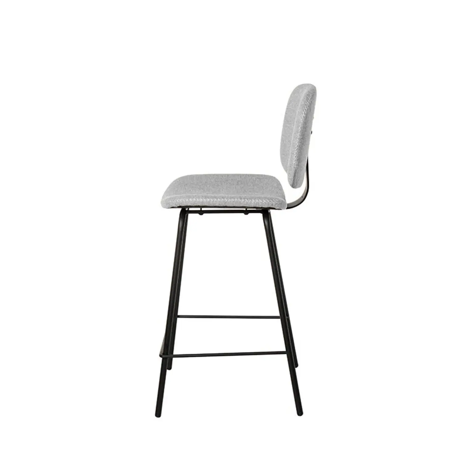 Taburete bajo con asiento redondo ligeramente curvado para mayor confort. Su respaldo amplio está diseñado para mejorar la postura de la espalda. El taburete LOGAN está tapizado en tela color gris de poliéster 100%, que contrasta elegantemente con su estructura metálica negra. Su diseño minimalista es perfecto para cocinas o bares.