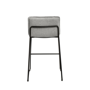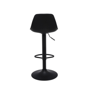 El taburete PIPER se adapta perfectamente a cualquier espacio gracias a su diseño industrial y elegante. Cuenta con una base circular y una columna delgada metálica en color negro, que le confieren un toque sofisticado y estabilidad. El asiento y el respaldo están tapizados en polipiel gris, con costuras visibles que añaden un toque de estilo adicional. El respaldo, ligeramente curvado, proporciona un soporte extra, mientras que el reposapiés integrado aumenta la comodidad. Además, el taburete PIPER ofrece una rotación de 360º y permite ajustar su altura mediante un sistema de pistón, brindando una versatilidad excepcional.