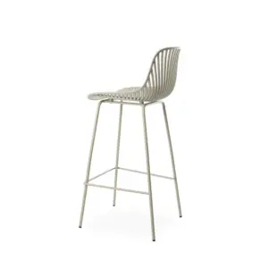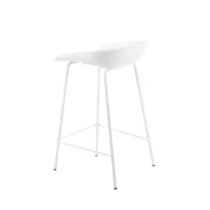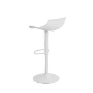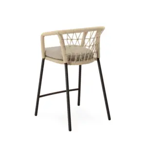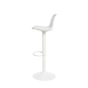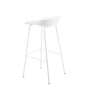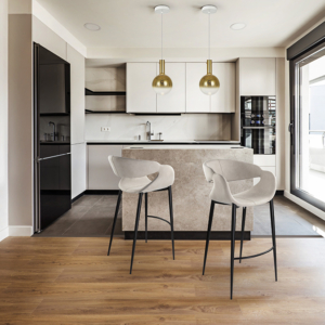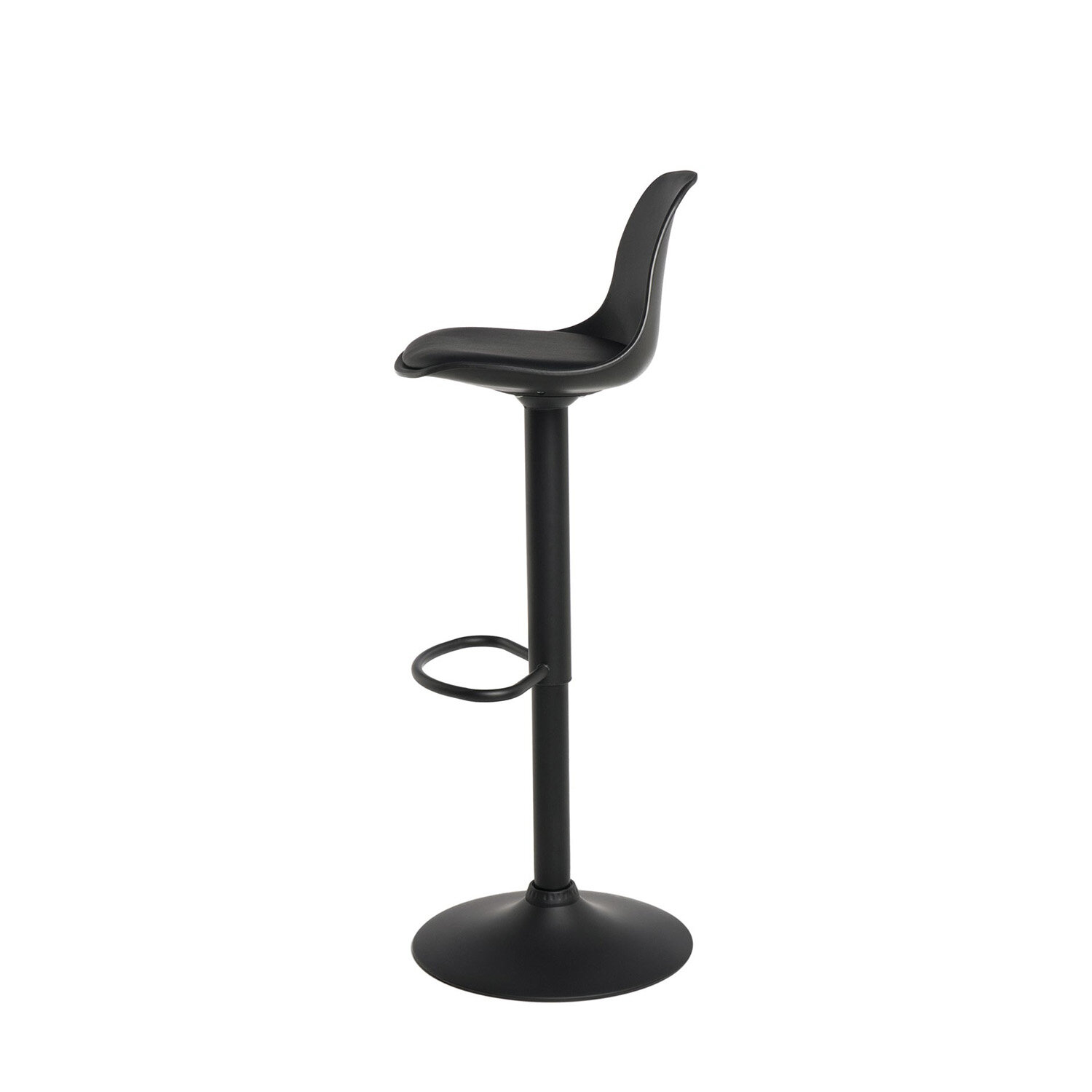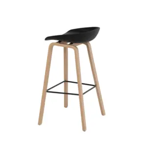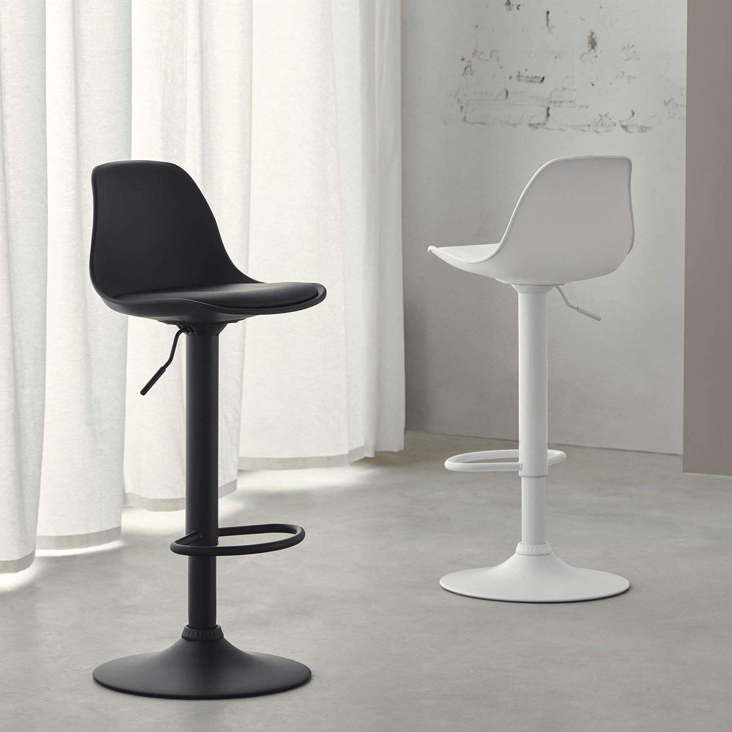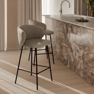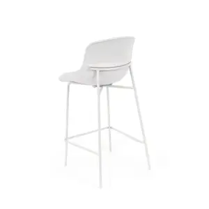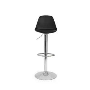 Taburete compuesto por un asiento acolchado y respaldo de polipropileno cóncavo, diseñado para ofrecer comodidad en el uso diario. La estructura metálica en color negro, combinada con un reposapiés delantero y una base circular, le confiere un aspecto elegante y moderno. Cuenta con un sistema de elevación por pistón y es giratorio 360º. El taburete SADIE es perfecto para barras de bar o barras bajas de cocina.