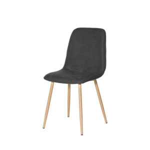 La silla LAILA tiene un diseño elegante y minimalista, ideal para cualquier espacio contemporáneo. Tapizada en un suave tejido gris oscuro, ofrece un respaldo y asiento cómodos y ergonómicos. La silla cuenta con cuatro patas metálicas negras que se inclinan ligeramente hacia afuera, proporcionando estabilidad y un toque de sofisticación. El respaldo presenta un patrón de costura en forma de diamante, añadiendo textura y un atractivo visual único. Esta silla no solo es funcional, sino que también aporta un toque de estilo a cualquier comedor, oficina o sala de estar.