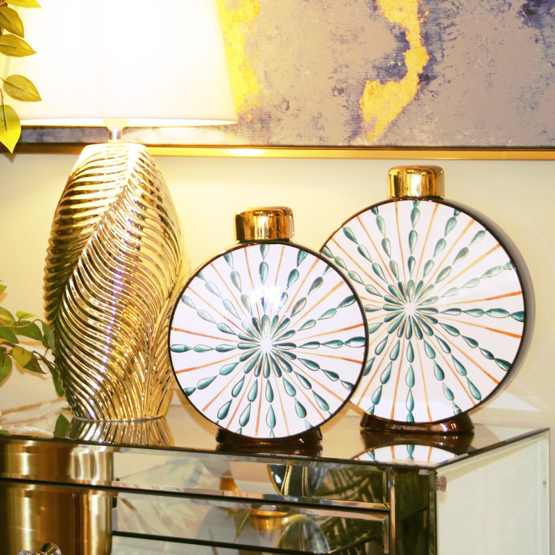 Tibor Cerámica Redondo Blanco y Azul C y Tapa Dorada
