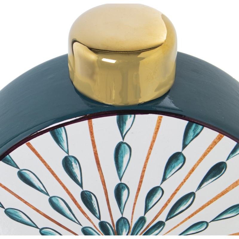 Detalles: Tibor Cerámica Redondo Blanco y Azul C y Tapa Dorada | Categoría: Decoracion Ceramica | Ref.: 60688