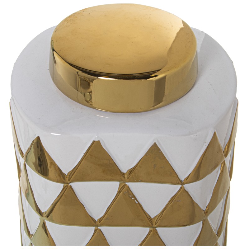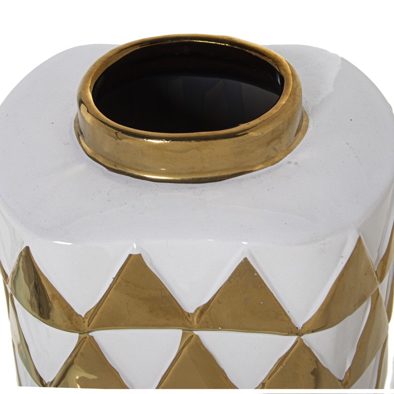 Detalles: Tibor Cerámica Triángulos Blanco y Oro | Categoría: Decoracion Ceramica | Ref.: 51158