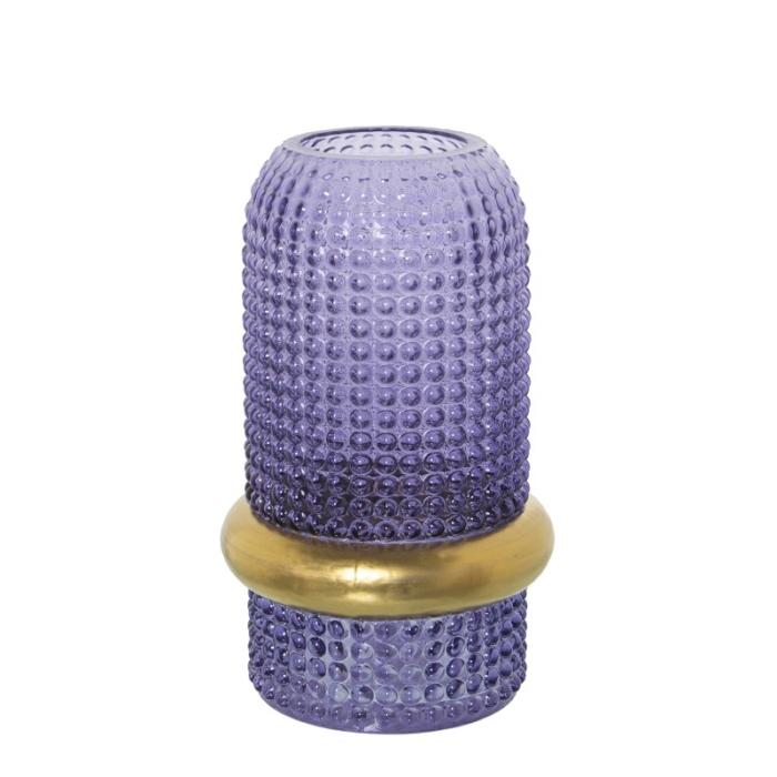 Jarrón Cristal Azul Aro Dorado y Boca:ø5 y 5Cm