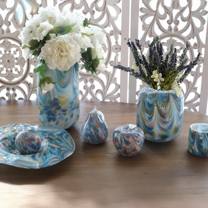 Jarrón Cristal Blanco y Azul