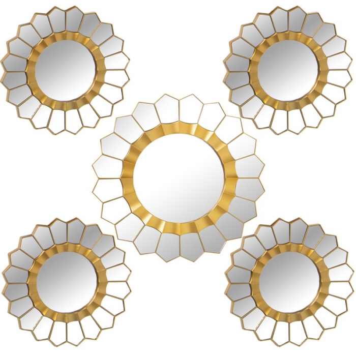 Set 5 Adornos Pared Espejos C y Melamina Dorada 1Xø55Cm y 4Xø25Cm