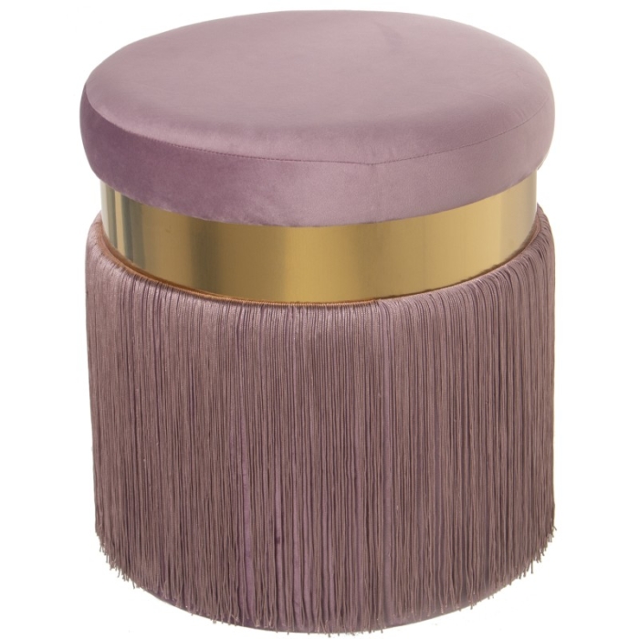 Puf Terciopelo Rosa C y Flecos y Banda Acero Dorado:7Cm y Dm y Poli y Flecos:29Cm